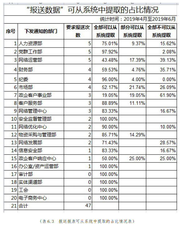 (表6.3 报送报表可从系统中提取的占比情况表)