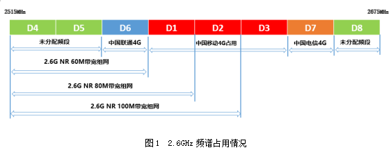 这就要求在NR载波开启100M带宽时,需要确保周边4G小区完成D1、D2频点退频,但是2.6GHz频段是目前4G容量的主力承载频段,频率重耕存在三方面的挑战。
