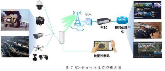 多种路侧摄像头+无人机监控设备立体覆盖,5G天线技术立体覆盖,将立体空间的矿山环境视频回传本地监控平台,实现全方位立体监控,助力矿区安全。如图7所示。