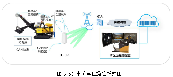 5G大带宽实现作业端多路高清摄像头实时回传至远程操控室,5G低时延保证操控室控制信及时到达电铲进行精准作业操控。