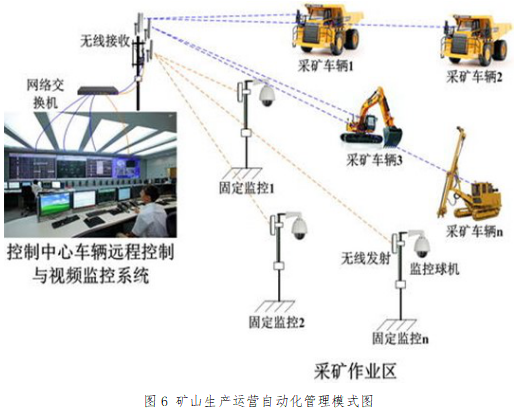搭建远程智能调度监控平台,建设车车-车网-军地通信系统。24小时对矿区车辆运作情况多角度实时监控。提高生产效率及作业安全性。最终实现矿山生产运营自动化管理。如图6所示。