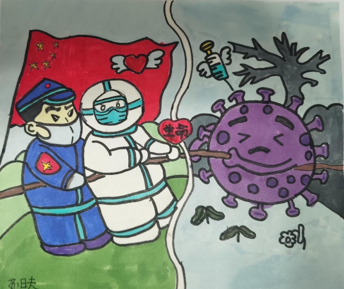 鄂璐莎与丈夫两人都在一线参加防疫工作,家里只留下70多岁的父母亲和10岁的孩子。临行前,父母叮嘱她说,孩子你不用操心,我们替你照看好。你好好照顾患者,千万保护好自己。鄂璐莎说:“家人的支持,让我无后顾之忧。”一个月来,家中留守的老人、孩子因为不熟悉线上采购,物资购买困难,但他们没有丝毫抱怨。10岁的儿子更是完全依靠自己上网课学习。鄂璐莎发来孩子画的一幅画,“这是孩子在用画笔为抗疫加油,希望呼和浩特疫情早日结束,爸爸妈妈早日回家。”看到画的鄂璐莎眼泪瞬间盈满了眼眶,但擦干眼泪,她还是继续在抗疫一线冲锋战斗。