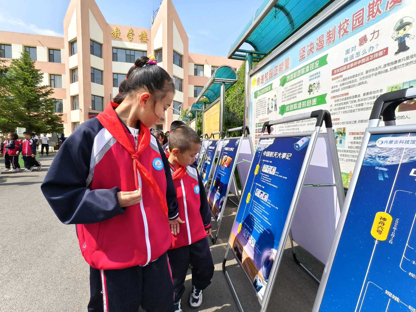 科普大篷车变身“移动科技馆”,满载涵盖声光电磁、力学数学、公共安全等领域的30余件互动展品走进校园,让草原学子在亲手触摸、沉浸体验中感受科学魅力。同时,还通过《内蒙古珍贵文物数字藏品展》与《航天主题展览》,用生动的图文展示我国航天事业发展历程及内蒙古珍贵文物。