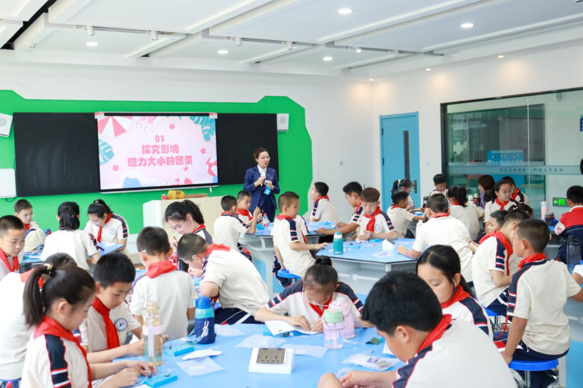 最热烈的求知热情在动手实验课堂迸发。当锡纸在火焰中绽放璀璨“银花”,学生亲眼见证金属的焰色反应奥秘;一口气吹起悬浮小球,感受气流速度与压力的神奇博弈;小磁针在电流指引下悄然偏转,电磁关系的启蒙在此刻完成。孩子们围在实验台前亲手操作、观察记录、热烈讨论,科学探索的主动性与成就感洋溢在每一张笑脸上。