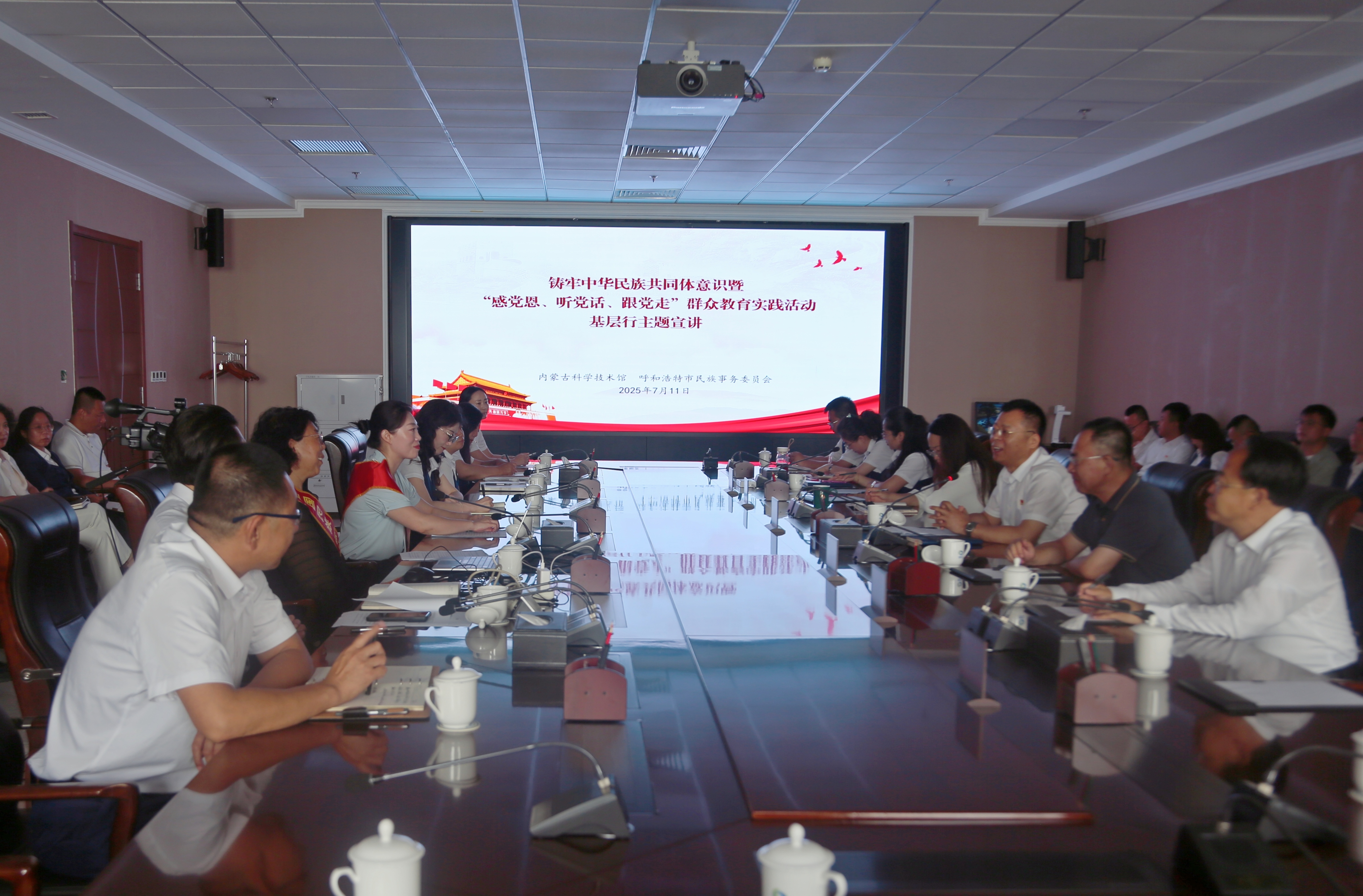 为深入贯彻习近平总书记关于加强和改进民族工作的重要思想,有形有感有效开展铸牢中华民族共同体意识宣传教育,7月11日,内蒙古科技馆联合呼和浩特市民族事务委员会开展铸牢中华民族共同体意识暨“感党恩、听党话、跟党走”群众教育实践活动基层行主题宣讲活动,邀请全国民族团结进步模范个人、回民区通道街三顺店社区党委书记李一芝和全区民族团结进步模范个人、呼和浩特市公共交通有限责任公司第三公共汽车公司车队长苏日娅作专题宣讲。内蒙古科技馆馆长杜建峰出席活动并致辞。呼和浩特市民族团结进步促进会副会长兼秘书长李世馨,呼和浩特市民族团结进步促进会顾问、呼和浩特市民委二级调研员刘永春,内蒙古科技馆副馆长永青出席活动。活动由内蒙古科技馆副馆长贾睿芬主持。