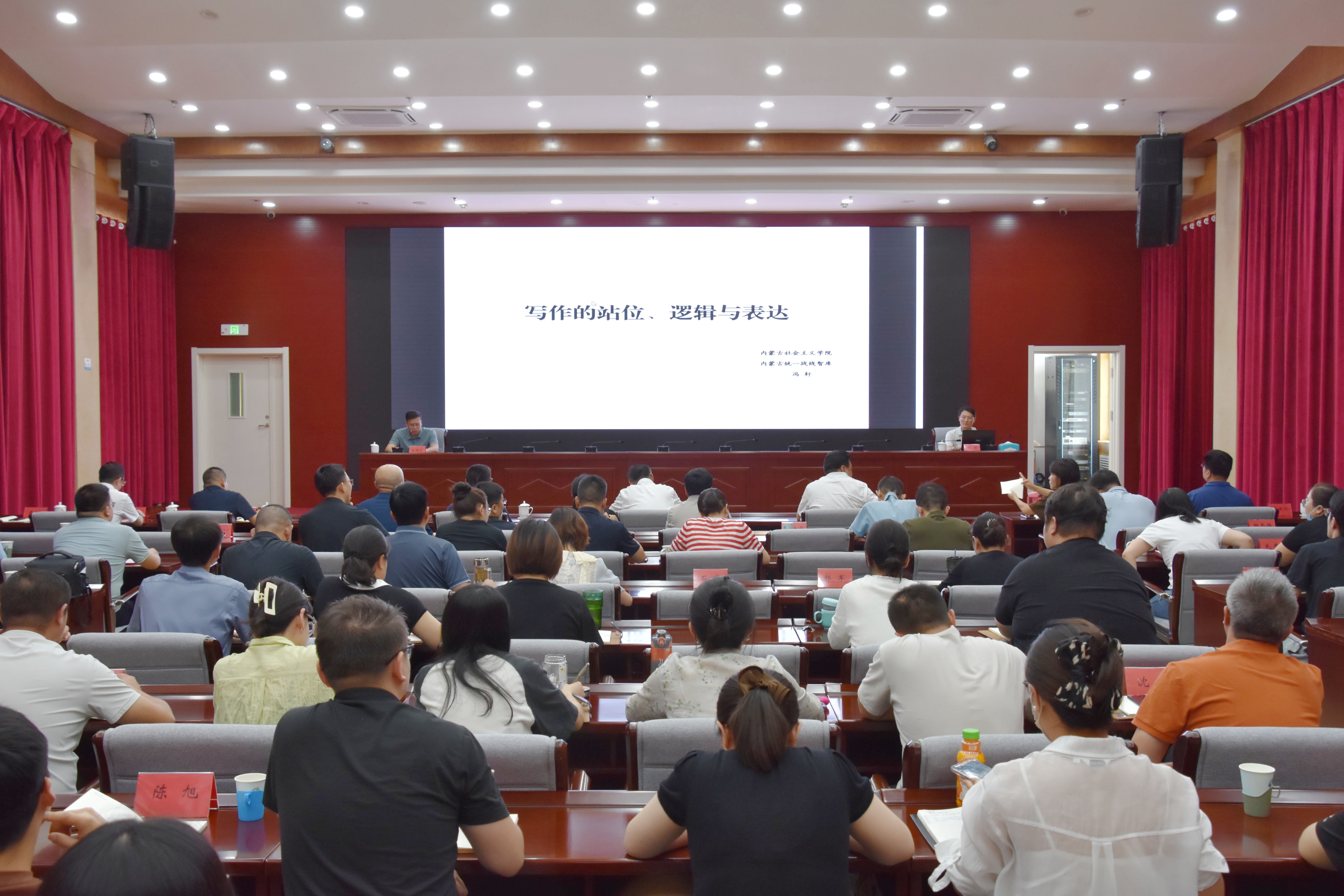 为深入学习贯彻习近平总书记关于加强党的作风建设的重要论述,推动深入贯彻中央八项规定精神学习教育取得扎实成效,7月31日,内蒙古科协与内蒙古科学技术研究院联合举办公文写作和激励干部担当作为专题辅导讲座,邀请内蒙古社会主义学院编审冯轩和内蒙古党校国家治理教研部副主任冯俊刚进行专题讲座。内蒙古科协主席曹金山,内蒙古科学技术研究院党组副书记随洋,内蒙古科协党组成员、副主席苏雅来,以及内蒙古科学技术研究院机关部分党员干部,内蒙古科协机关、事业单位全体党员干部参加辅导。