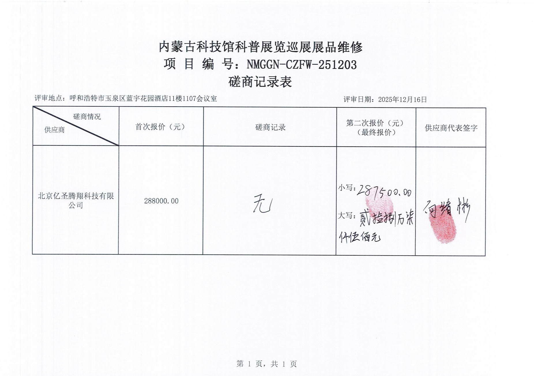 1 | 科普展览巡展展品维修 | 合同签订之日起6个月 | 符合国家相关质量标准及行业要求 | 287500.00元 |