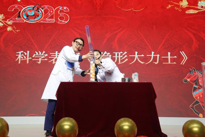 策马探科:精彩表演 解锁科学奥秘。“策马探科”科学表演集科学实验秀、科学家精神宣讲、主题趣探于一体,呈现三重科学盛宴。生动有趣的科学实验秀《隐形大力士》精彩上演,以直观震撼的演绎,将抽象的力学原理转化为充满视觉冲击力的现场表演,激发观众的好奇心、想象力与探求欲;科学家精神宣讲环节带来《一生一事 光耀中华——朱光亚》,通过鲜活的故事与细腻的讲述,生动再现朱光亚等老一辈科学家在国防科技领域攻坚克难、以身许国的奋斗历程,传承中国科学家在科研路上的执着探索与赤诚热爱;主题趣探环节中,“探索马”和“智慧马”以独特视角,让观众在沉浸式体验中邂逅科学之美,在精神熏陶中种下探索的种子。