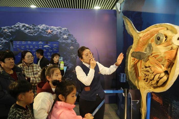 海洋精灵:标本探秘 守护蓝色家园。在一层专题展厅,《海洋精灵》专题展览热度不减。同时,《海洋精灵》专题展配套的展厅教育活动持续开展,依托珍贵的海洋生物标本,精心打造了《海洋智慧:仿生潜艇》《海洋巨兽—鲸鱼》《软骨硬汉—鲨鱼的奇妙世界》《波光“粼粼”》等多门特色科普课程。课程融合标本观察、互动体验、手工创作与实验探究等多种形式,打破地理局限,让青少年近距离探索海洋深处的奥秘,既能解锁海洋生物的生存智慧,又能传递海洋生态保护理念,让观众在欢乐氛围中拓宽科学视野、锻炼实践能力,开启一场兼具科学性与趣味性的海洋探索之旅。
