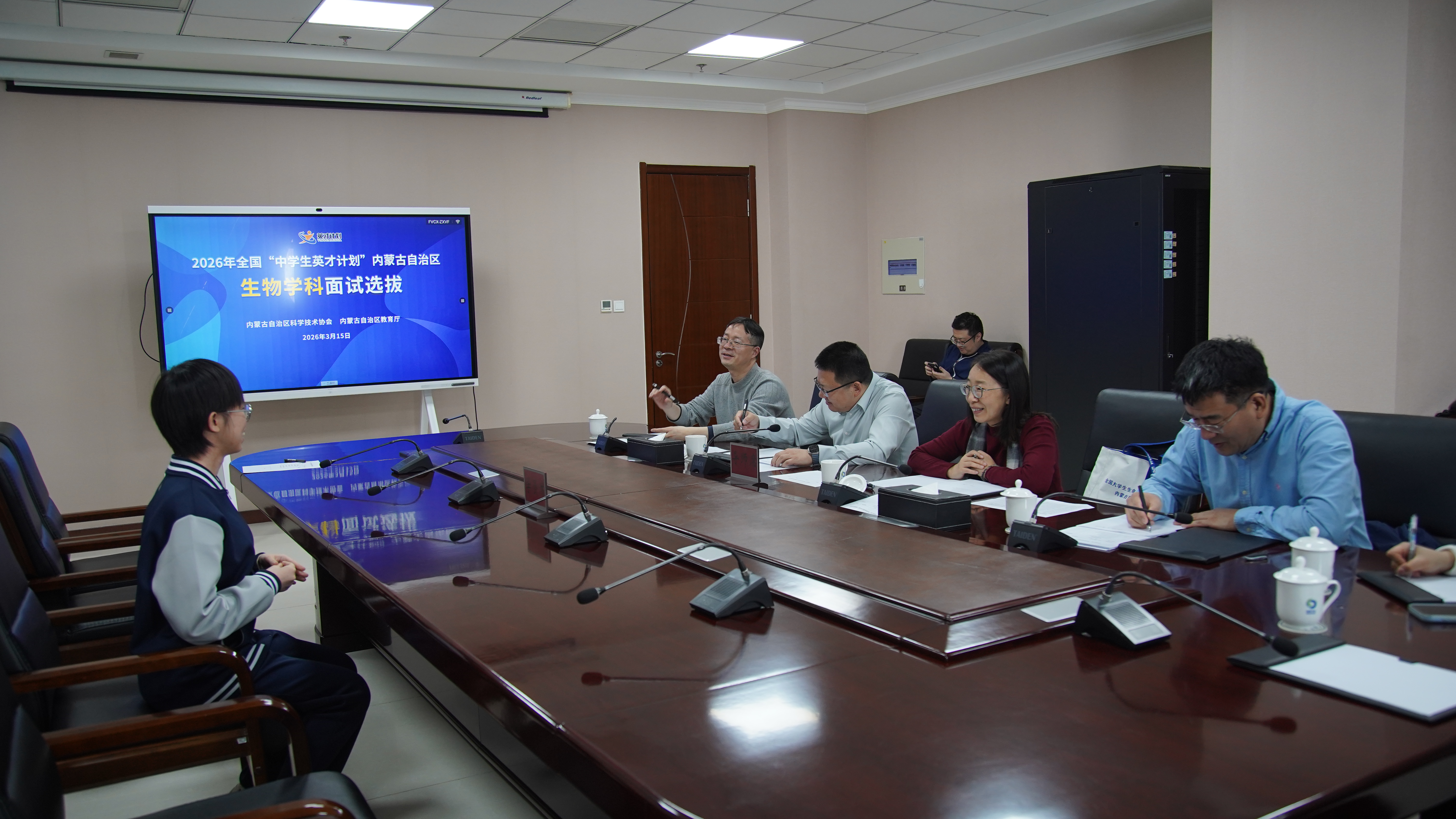 3月15日,2026年全国“中学生英才计划”内蒙古学员选拔面试在内蒙古科技馆举行。来自内蒙古师范大学附属中学、呼和浩特市第二中学等学校的80余名优秀中学生参与选拔。经过中学推荐、材料审核、学科潜质测试及导师面试等多个环节考核,最终30名学生入选。其中,数学、物理、化学、计算机学科各5人,生物学科10人。