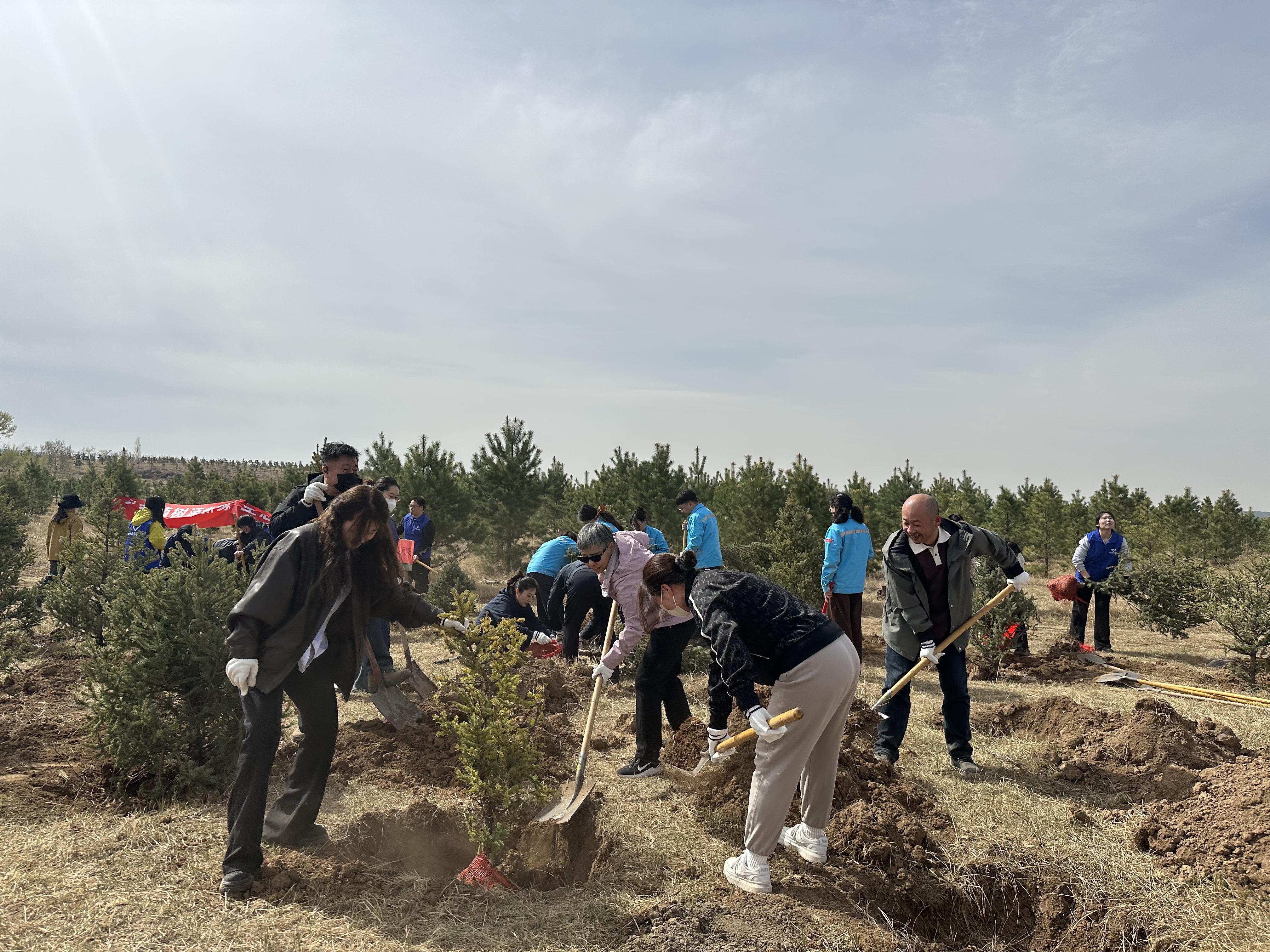 谷雨后的大青山草木复苏。在植树现场,大家在统一规划区域内,分工协作,热情高涨:挥锹挖坑、扶苗培土、围堰浇水,每一道工序都做得认真细致。经过近半天的劳动,新栽的树苗整齐排列,为春日大青山增添了一片生机。