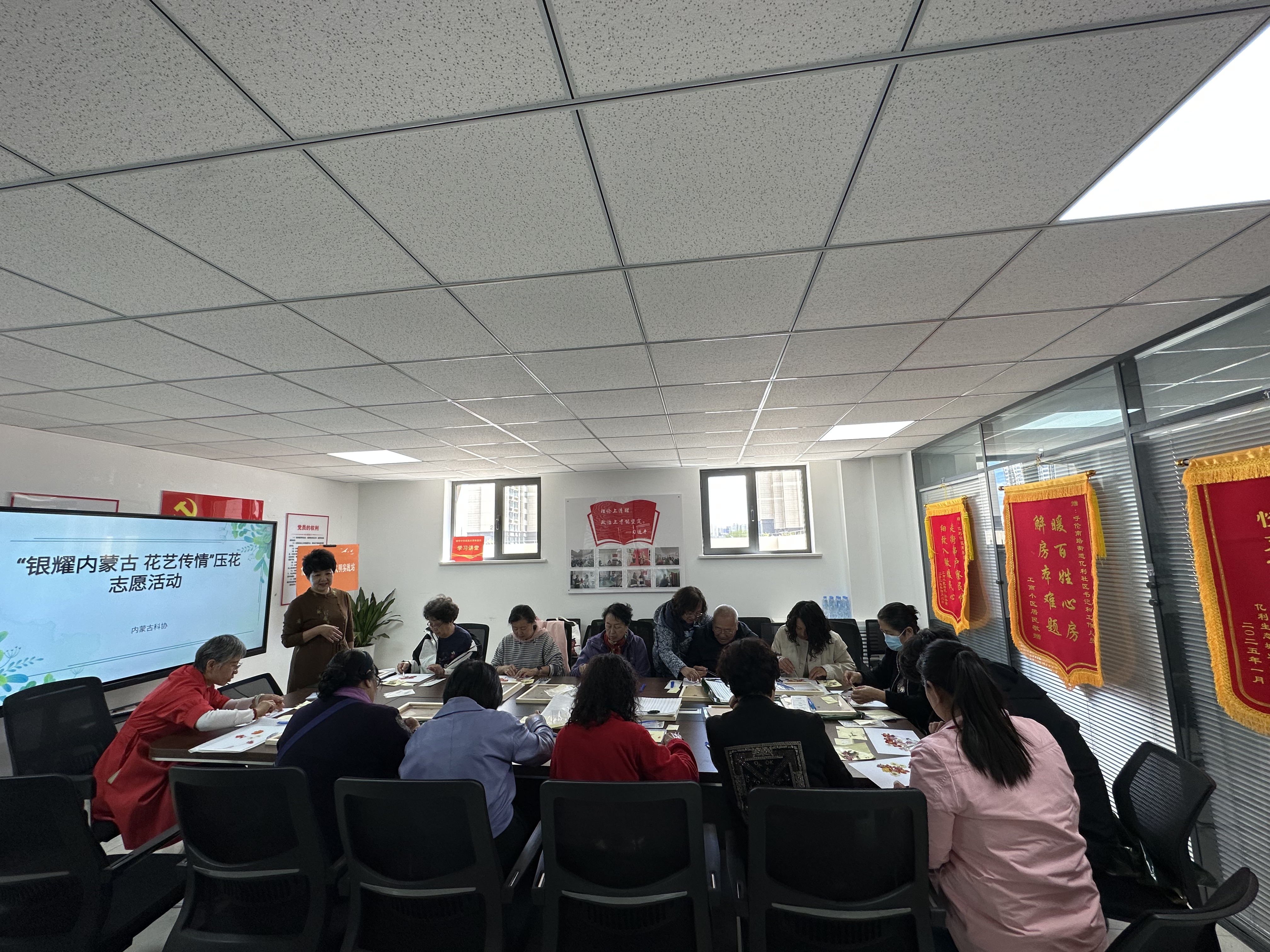 在随后的实践环节中,内蒙古科协离退休人员与社区居民结对合作,亲手制作压花作品。大家在创作中交流情感、分享经验,现场气氛温馨融洽。老同志们表示,此类活动将志愿服务与传统手作文化相结合,既发挥了自身余热,又拉近了与群众的距离。