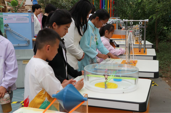 活动当天,孩子们怀揣着兴奋与好奇走进科技馆。在科技展品体验区,孩子们被各种新奇的科技展品所吸引,大家迫不及待地动手操作,亲身感受科技的魅力。“这个机器人好厉害,还能跳舞!”“我第一次看到这么神奇的光学现象!”孩子们的惊叹声和欢笑声此起彼伏,现场气氛热烈而温馨。此外,女企业家们化身“爱心妈妈”,陪伴在孩子们身边,为大家讲解各类展品的科学原理,鼓励他们勇敢探索,积极思考。